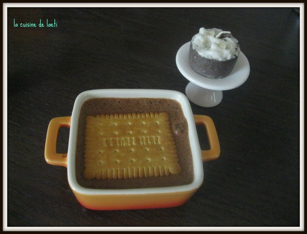 Garnissez le fond d un ou plusieurs moules d une couche de petits-beurre, versez une couche de l appareil au chocolat et continuez à alterner biscuits et chocolat jusqu à épuisement des ingrédients. Terminez par des petits-beurre pour décorer la surface. Laissez reposer au moins 4h au réfrigérateur.