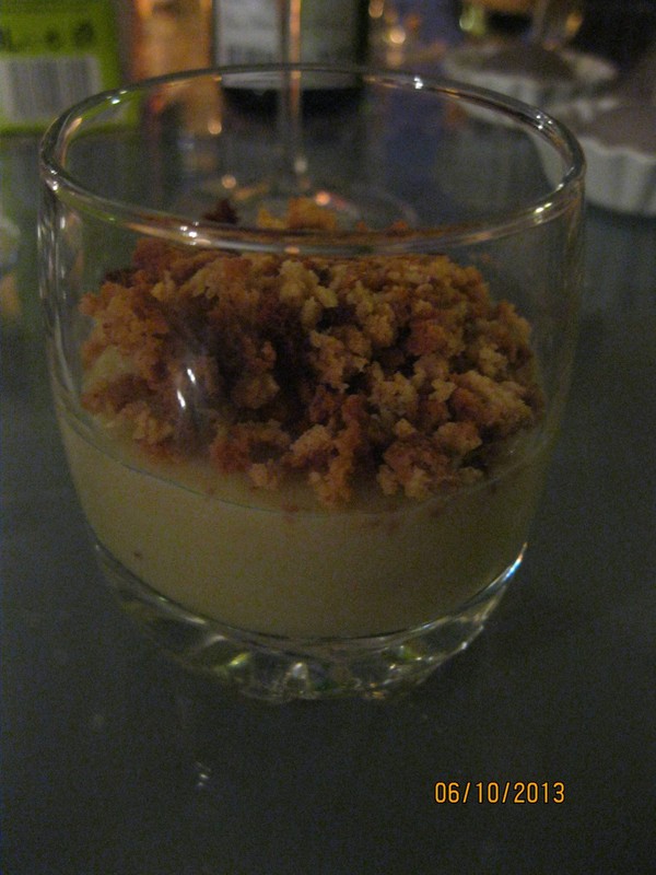Répartir la compote encore chaude dans 4 ramequins et saupoudrez de miettes de pain d'épice croustillantes.